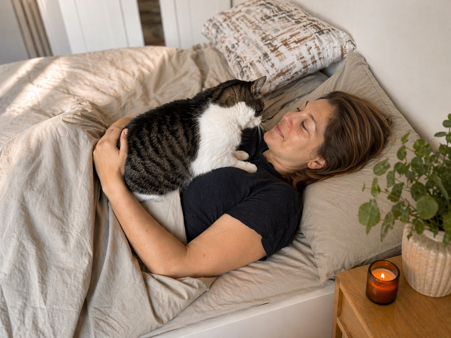 It sounds simple because it is. Most of us can do it right there in bed, before we've done a single thing. No mat required, no warm-up, no particular level of flexibility. You just fold your arms across your chest or wrap them around your shoulders, and for a moment you hold the body that has been showing up for you every single day.